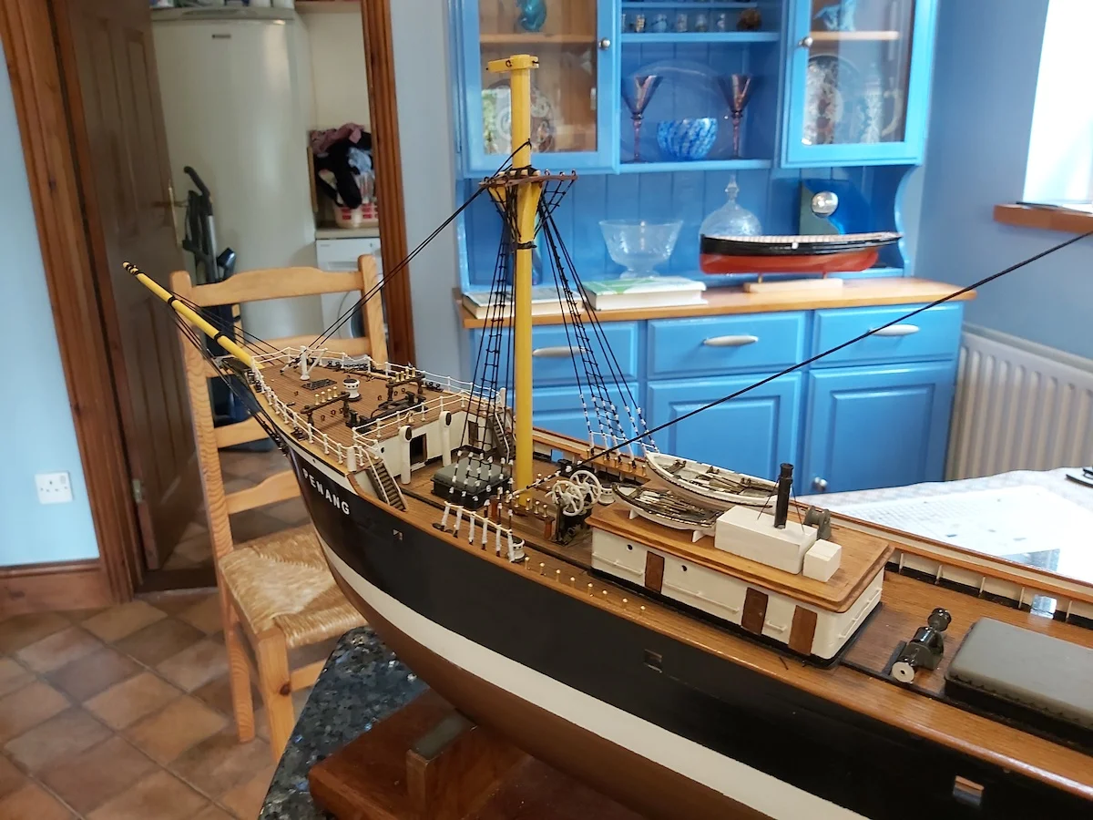 Simon asked me if I would be interested in completing the model for him. I agreed, and arrangements were put in hand to meet up in Suffolk to hand the model over. Then the coronavirus second wave descended, and arrangements were dashed. Finally, on 1st June Simon was able to visit me in Oulton Broad, and I caught my first glimpse of the vessel.