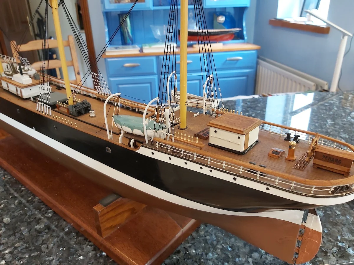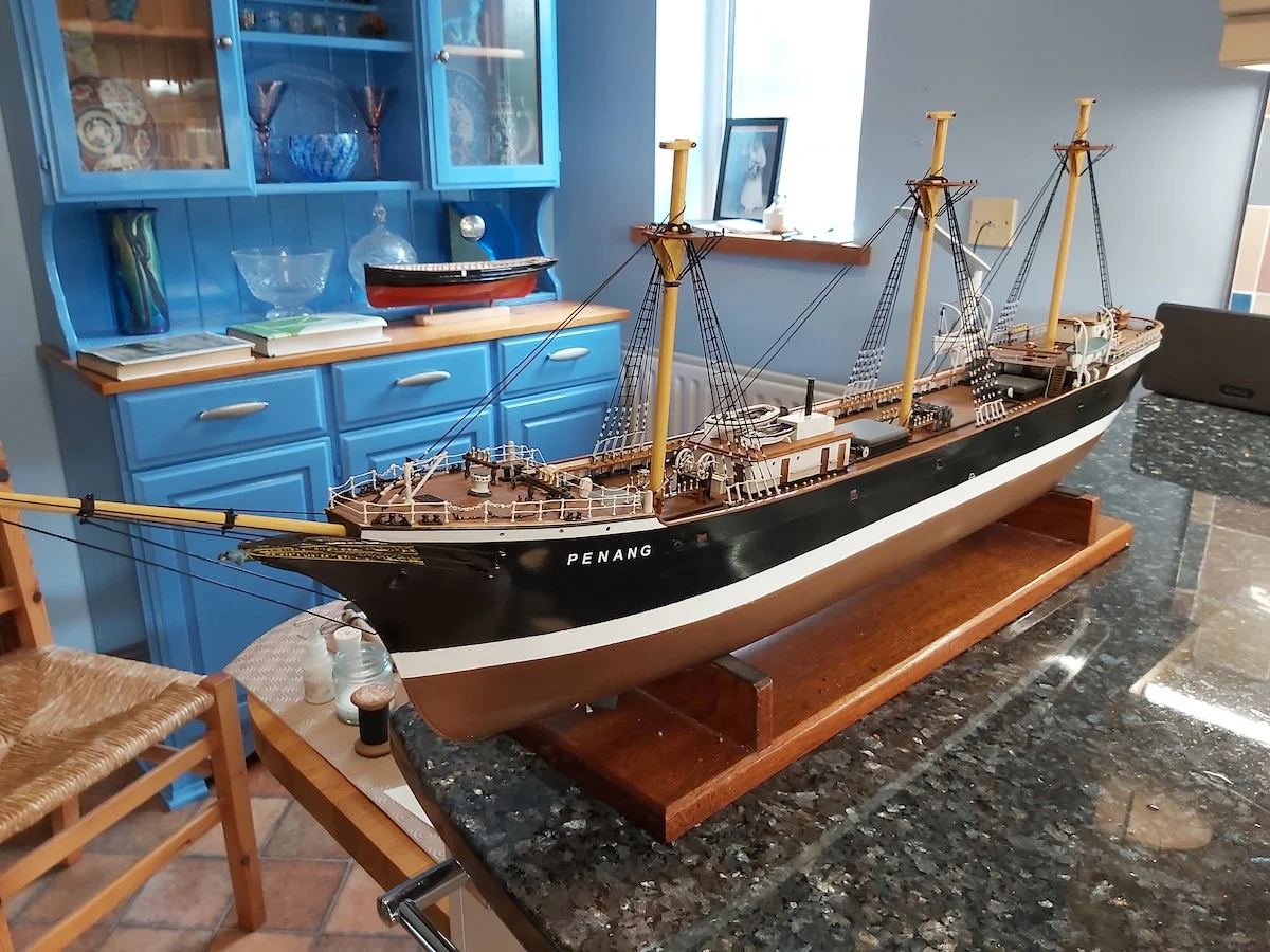 In 2020 I was contacted by Simon Adams of Southampton, who was in possession of a part-built scale model of the barque “Penang”. The model had been started by his father in about 1935, but had never been completed. Like myself, Simon is an ex- seafarer, sailing as Engineer in the Royal Mail line in the 1960s, around the same time as I was sailing as Cadet in Ellerman line.